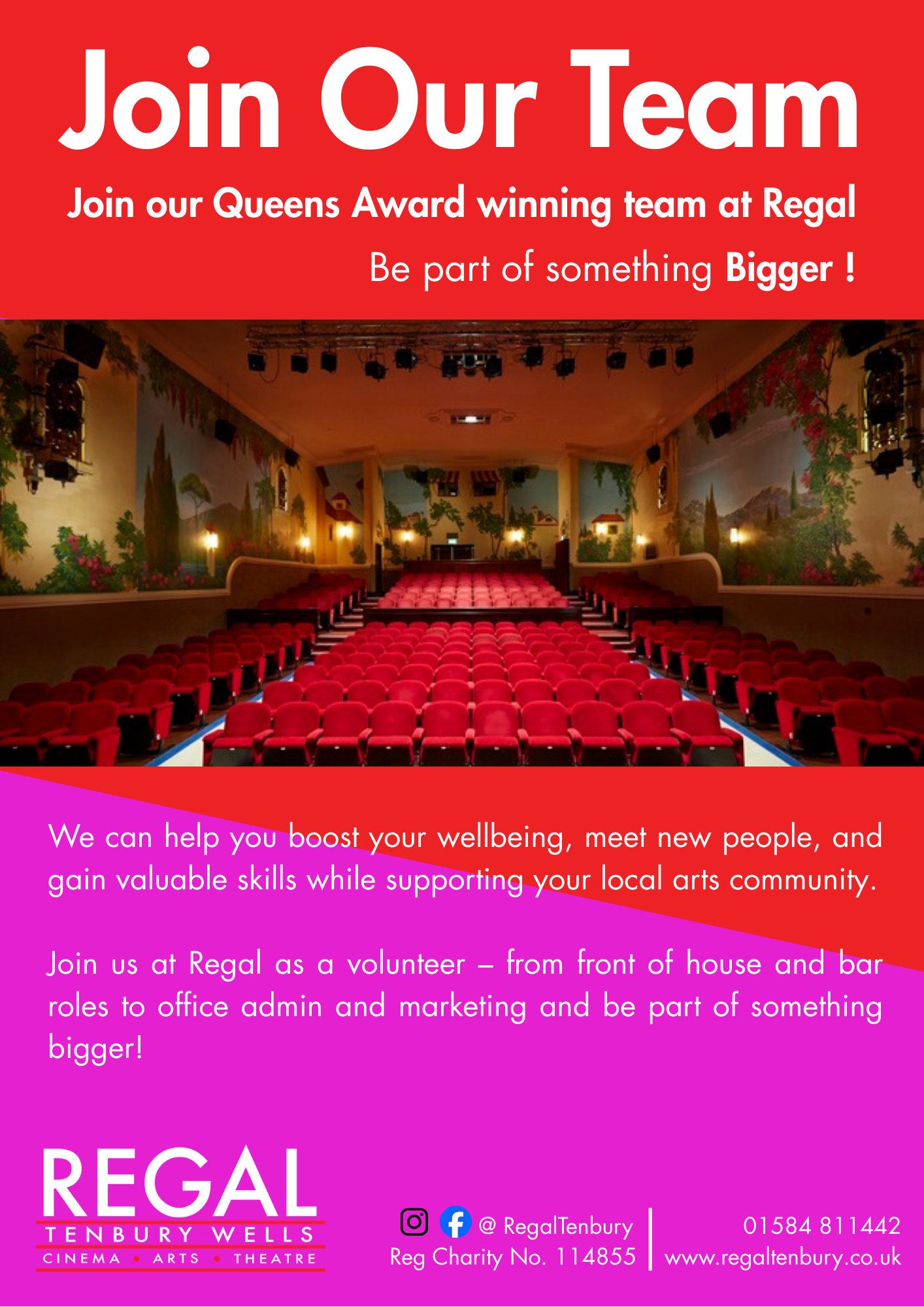 The Regal will celebrate its 90th anniversary in 2027 and we are looking for a Theatre Director who will lead us in delivering a special year of programming and will then, in the coming years, continue to build our audiences and financial stability.